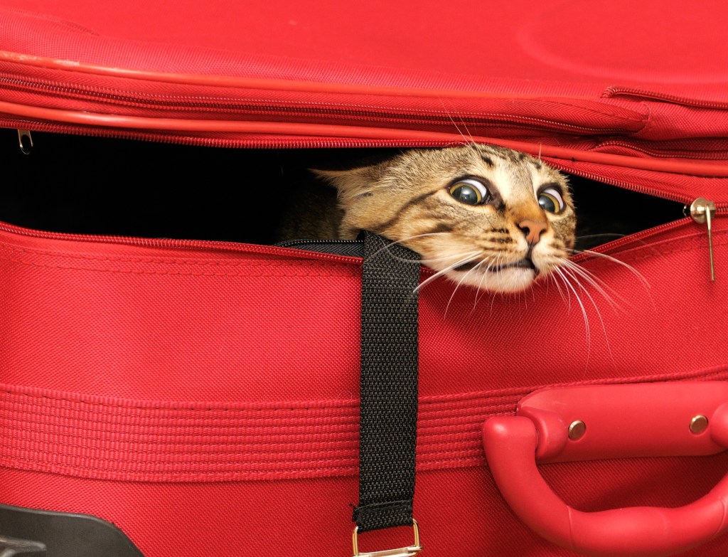 Para evitar la ansiedad de la marcha hemos de intentar que el gato no se percate de que estamos haciendo el equipaje. El ajetreo de las maletas es ya de por sí algo que no le gusta nada y que le asustaría y le pondría ya en sobre aviso si no es la primera vez que nos vamos.