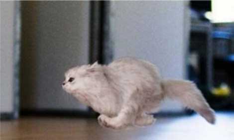 El gato corre, salta, maúlla y se mueve en exceso.