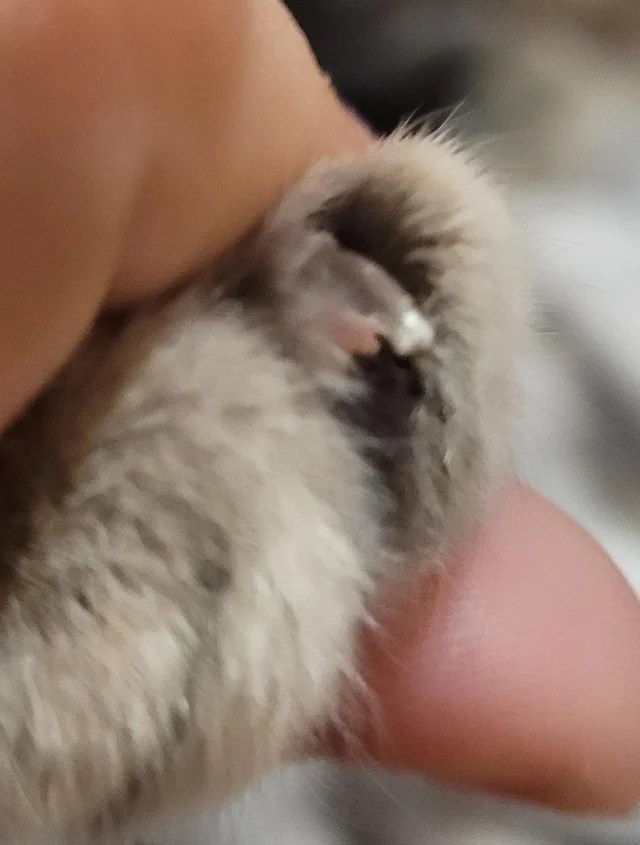 Toma suavemente la patita de tu gato y aprieta levemente la zona de la almohadilla para que la uña quede visible y ve comprobando una a una el estado de cada uña.